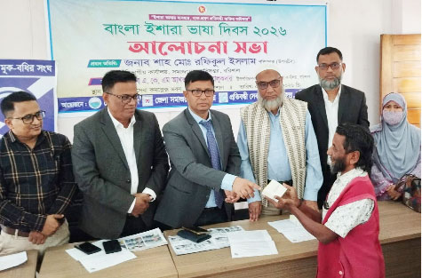 A discussion meeting was held in Barisal on the occasion of Bangla Sign Language Day 2026. The Bangla Sign Language Day was celebrated with the theme 'Promote Bangla Sign Language, Build Smart Bangladesh'. On Saturday, February 7, at 11 am, a discussion meeting was held on the occasion of the day in the hall room of the District Social Service Complex building in Rupatali of the city, organized by the District Administration, District Social Service Office, Disability Service and Help Center.