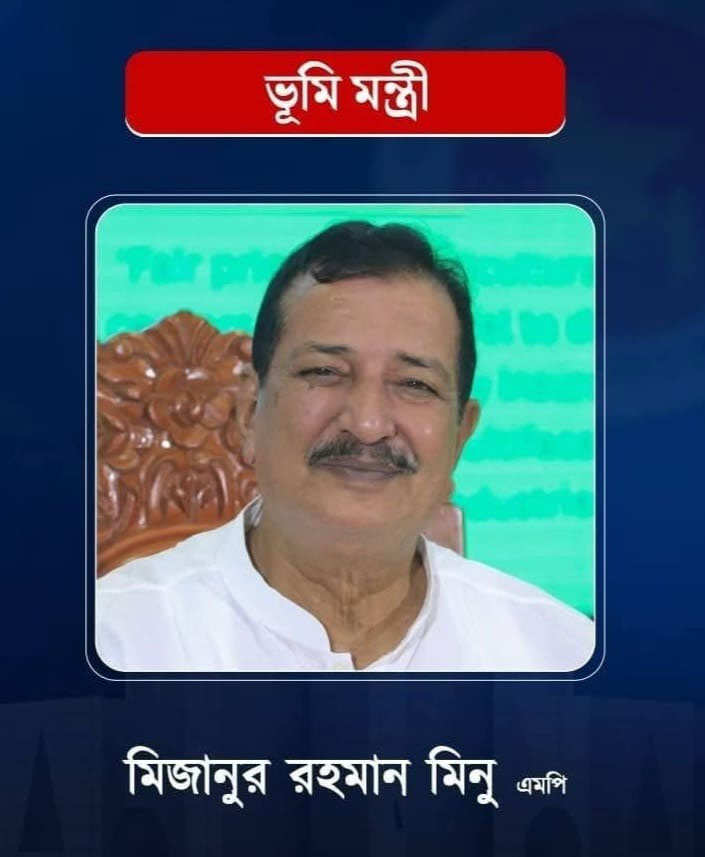 Rajshahi Bureau: Under the leadership of Tarique Rahman, the newly formed cabinet has appointed Rajshahi-2 (Sadar) lawmaker and veteran politician Mizanur Rahman Minu as the new Minister of Land.