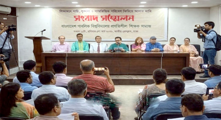 A press conference organized by the Bangladesh Public University Progressive Teachers' Association at the Jatiya Press Club Zahur Hossain Chowdhury Hall today highlighted the unrest, oppression and injustice created in the country's educational institutions in the last 18 months and called for urgent steps to be taken to restore academic justice and discipline.