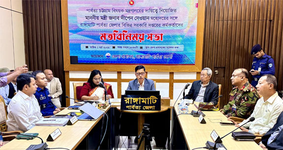 The meeting, chaired by Rangamati Deputy Commissioner Najma Ashrafi, was attended by Chittagong Hill Tracts Development Board Chairman Major General (Retd) Anup Kumar Chakma, Rangamati Region Commander Brigadier General Mohammad Nazmul Haque, Joint Secretary of the Ministry of Chittagong Hill Tracts Affairs Konkan Chakma and senior officials of the concerned departments. In the meeting, officials of various government departments of the district presented their respective activities and progress before the minister.