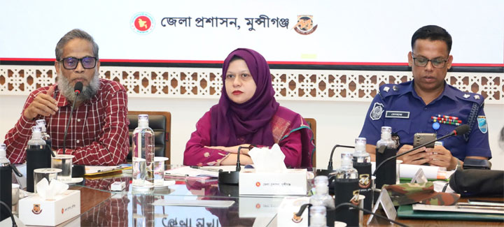 The monthly meeting of the District Law and Order Committee was held at the conference room of the Deputy Commissioner's office organized by the Munshiganj District Administration. The meeting was presided over by the Deputy Commissioner and learned District Magistrate Syeda Nurmahal Ashrafi.