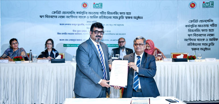 SME Foundation and Prime Bank have signed a refinancing agreement to expand credit access for cottage, micro, small, and medium enterprises (CMSMEs) through the government's Tk300 crore revolving fund and Credit Wholesaling guidelines. The agreement was signed in Dhaka and attended by Khandaker Abdul Muktadir, Minister for Industries, Commerce, Textiles, and Jute, who underscored the government's commitment to fostering a supportive environment for small entrepreneurs. Under this agreement, Prime Bank will offer affordable loans to qualified entrepreneurs at a maximum interest rate of 8 per cent per year. Loan amounts range from Tk1 lakh to Tk25 lakh, depending on the enterprise's size. To lessen the strain on small business owners, the programme offers up to 4 years of repayment, including a 6-month grace period, so businesses can generate returns before starting monthly payments. A primary goal of the initiative is to advance financial inclusion and social equity. The agreement stipulates that a substantial portion of funds supports women entrepreneurs and businesses within designated industrial clusters. The programme emphasises support for young ICT innovators, manufacturers of import substitutes, and entrepreneurs in climate-vulnerable or underserved areas.