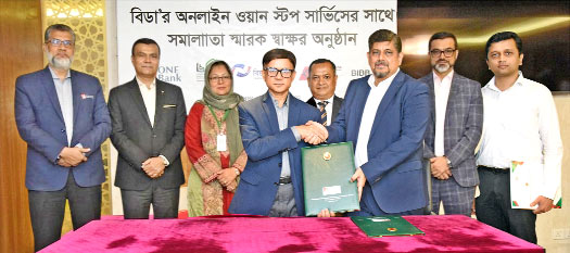 Managing Director and CEO of the Bank Mohd. Rafat Ullah Khan and Director General of BIDA Investment Promotion Jiban Krishna Saha Roy signed the agreement on behalf of their respective organizations. The ceremony was presided over by BIDA Executive Member Air Commodore Md. Shaharul Huda.