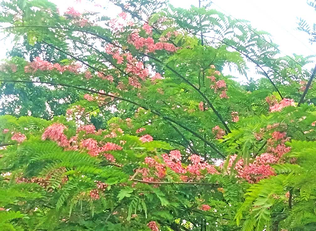 Locally known as "Lal Sonail," this tree is considered a wonderful gift of nature. Its pink and deep red blossoms have created a unique scenic charm across the area. A fully bloomed Cassia tree located in front of an online point on College Road has now become a visual attraction.