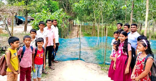 The road was fenced off last Tuesday using bamboo poles and netting. School authorities said teachers, students, and local residents have used the road for years. The sudden closure has caused severe hardship, with many students returning home after reaching near the school. Regular academic activities are being disrupted. However, landowner Tofazzal Hossain claimed the land belongs to his family. "We allowed people to use it for years, but now we have decided not to," he said. Attempts to contact Upazila Nirbahi Officer (UNO) Sharmin Ara were unsuccessful, as she did not respond to calls on her official mobile number.