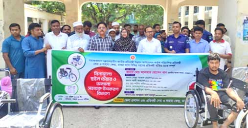 Free wheelchairs and other aids have been distributed to people with different types of disabilities under the initiative of the National Handicapped Development Foundation under the Ministry of Social Welfare in Magura.