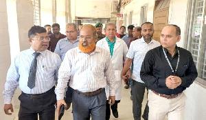 Divisional Commissioner Md. Khalil Ahmed was greeted with flowers by Barishal Local Government Department Director Khandaker Anwar Hossain upon his arrival at the Barishal Circuit House.